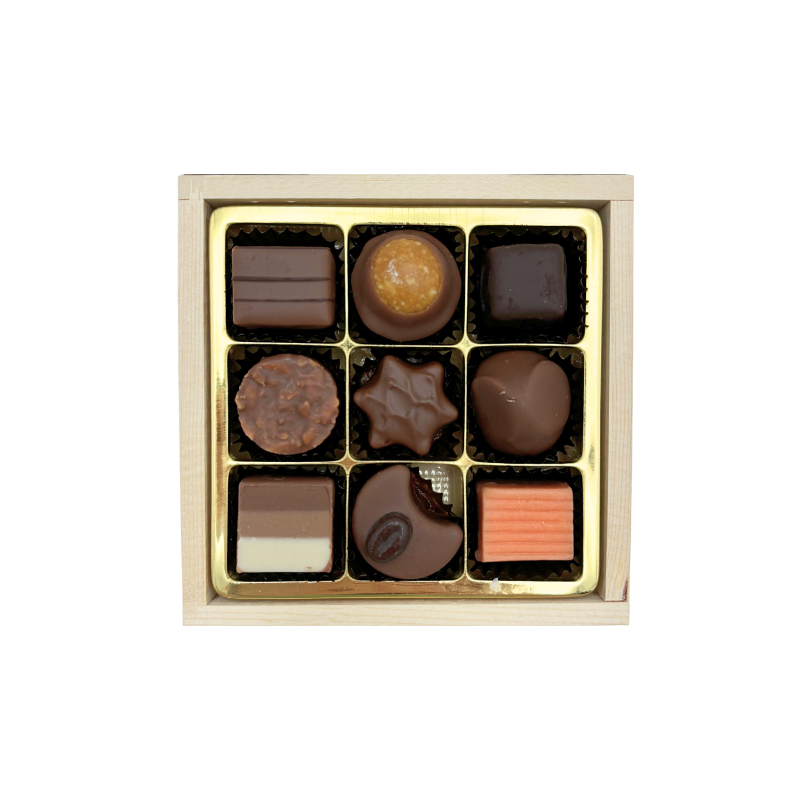 Holzschatulle mit Pralinés & Truffes assortiert (9 Stk.)