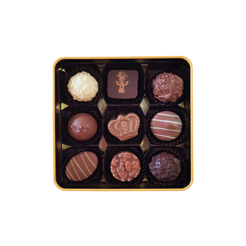 Weihnachtliche Metalldose gefüllt mit assortierten Pralinés & Truffes.