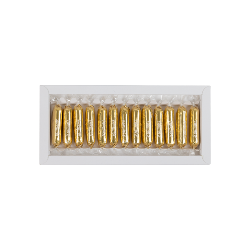 Edle Schiebeschachtel gefüllt mit 13 Likörstängeli mit exklusiver Williamsfüllung. Enthält Alkohol.